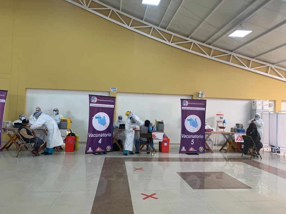 Con el objetivo de vacunar a 500 personas por día, el 25 de agosto pasado MSF inauguró en la ciudad de Cusco un nuevo centro de vacunación en el Colegio Médico que se mantendrá abierto seis días a la semana y estará dirigido a personas mayores de 18 años. Esta acción complementará la campaña de vacunación del Ministerio de Salud, que tiene un horario limitado los fines de semana porque el mismo personal de salud está ocupado trabajando en los centros sanitarios durante la semana. MSF notó postergaciones en las iniciativas de vacunación porque el personal se quedó sin vacunas debido a los retrasos en las solicitudes.