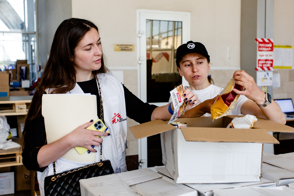 MSF ha proporcionado miles de cajas de alimentos (una caja de artículos no perecederos alimenta a una familia de tres o cuatro personas durante una semana) y kits de higiene (con papel higiénico, jabón, pasta de dientes y otros artículos esenciales) a personas de toda la ciudad y del óblast de Járkiv, en asociación con redes de personas voluntarias como la de Biletskaya.