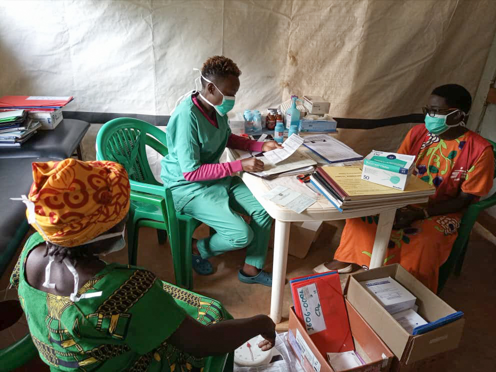 Durante la pandemia, hicimos algunos cambios en la clínica. Cuando las madres visitan el hospital para recoger su medicación, les proporcionamos mascarillas en la entrada y revisamos su temperatura antes de entrar en el área de triaje. Les doy consejos sobre cómo usar correctamente una mascarilla, cómo mantener una distancia física de un metro con otras personas, y no estrechar la mano al saludar a alguien más.