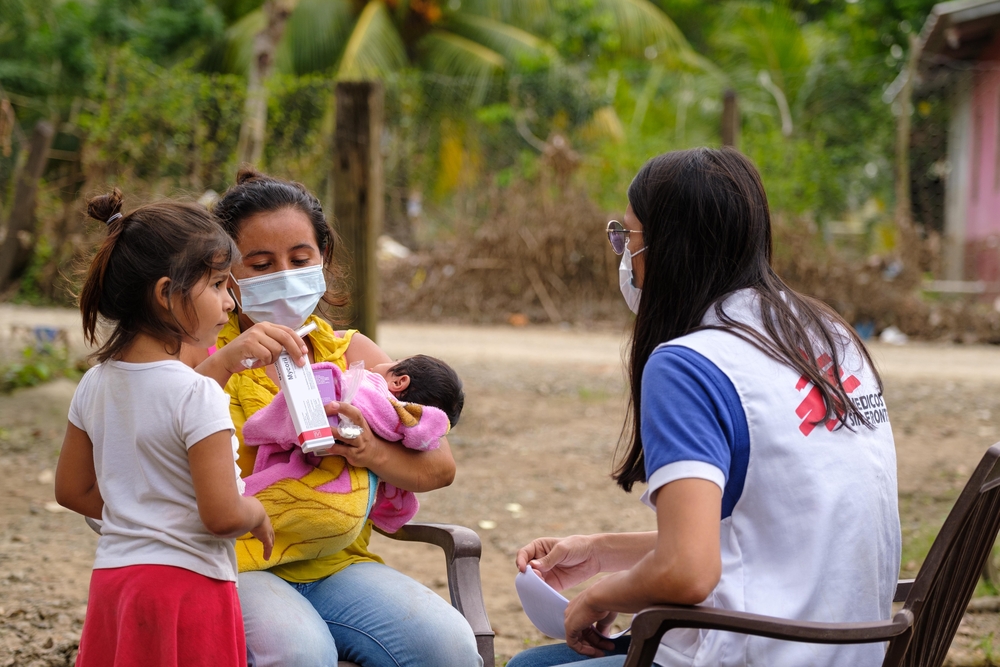 Apoyamos a la población pensando en la actual pandemia de la COVID-19, más la violencia que se vive en el país, la situación económica deteriorada y que sabemos que mucha gente ha decidido emigrar, lo que conlleva a que exista más desplazamiento por falta de alimentos o recursos básicos. Entonces, la situación va empeorando y está claro desde el inicio que había necesidades previas. Por eso, incorporamos un equipo de psicólogos que apoya a varios centros de salud y llevamos a cabo diferentes tipos de consulta individual. Asimismo, hemos desplegado un equipo de promotores de salud, quienes trabajan en estas comunidades, realizando actividades de educación y promoción del cuidado y prevención de enfermedades como COVID-19 o el dengue. Este equipo transfiere a las personas a los ocho centros de salud en donde tenemos un equipo de psicología que se esfuerza por brindar el mejor servicio. Cabe destacar que el trabajo en algunas comunidades con altos índices de criminalidad representa un trabajo logístico bastante importante, porque debemos garantizar la seguridad y la aceptación de MSF.