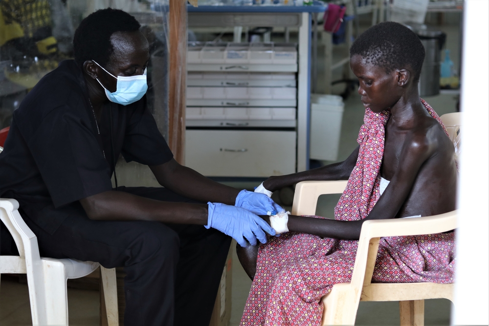 Los y las pacientes que llegan a las instalaciones de MSF a veces describen un viaje desgarrador. Cuando Yoel, de 13 años, se enfermó, su padre Stephen Manyang Chan, viudo y padre de cinco hijos, lo llevó a la clínica de MSF en Leer, estado de Unity, y caminó por aguas que le llegaban al pecho durante dos horas.