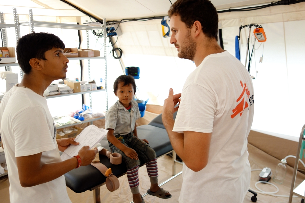 Los equipos de MSF se movilizaron poco después del primer terremoto de magnitud 7.8 y comenzaron las actividades médicas y la distribución de refugios y alimentos en helicóptero a la gente en los pueblos aislados. Esos equipos fueron capaces de responder casi inmediatamente después del segundo terremoto, de magnitud 7.3 el pasado 12 de mayo.