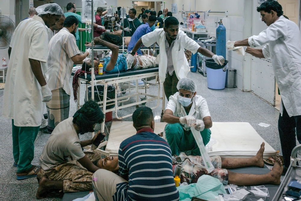 El 19 de julio tratamos a 206 pacientes heridos en tan sólo unas horas en el hospital del distrito de Sheikh Othman. Los primeros pacientes llegaron alrededor de las 9:30 am. Habían sido alcanzados por pedazos de balas. Me dijeron que eran del distrito de Dar Saad, que había sido baleado por los hutíes. Este ataque tenía como objetivo a los vecindarios pobres y de clases trabajadoras, en donde la gente vive hacinada, prácticamente unos encima de otros. No había ningún interés estratégico tras el ataque. Ese día tratamos a un increíble número de pacientes heridos. Siguieron llegando todo el día, hasta las 3:30 pm. Había mujeres, niños, ancianos…básicamente, civiles.