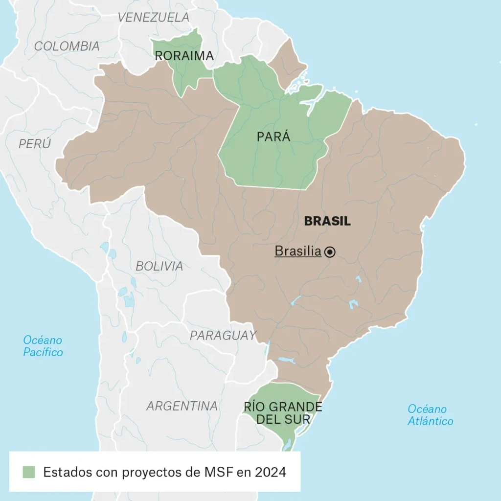 Nº de profesionales * de MSF en 2023: 46 | Gastamos 4,8 millones de € | MSF trabajamos por primera vez en Brasil en 1991
