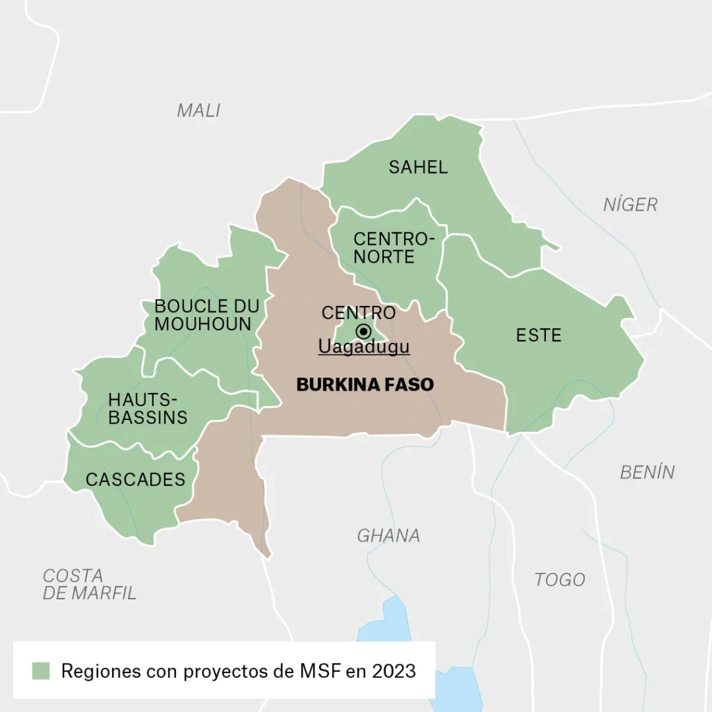Nº de profesionales * de MSF en 2023: 1,218 | Gastamos 32,7 millones de € | MSF trabajamos por primera vez en Burkina Faso en 1995