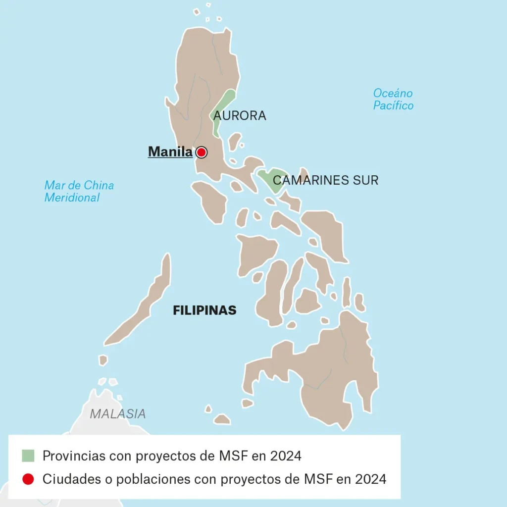 Nº de profesionales * de MSF en 2023: 54 | Gastamos 1,6 millones de € | MSF trabajamos por primera vez en Filipinas en 1984