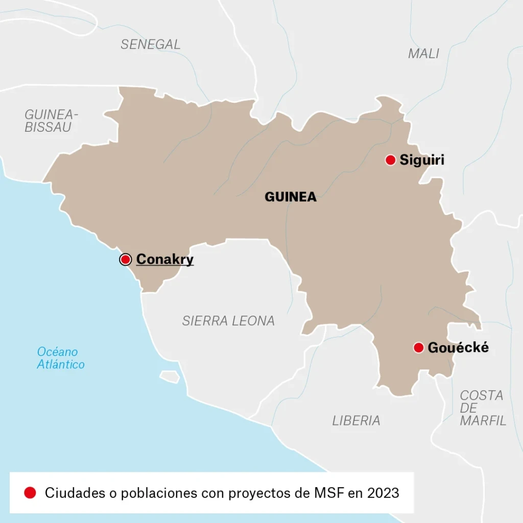 Nº de profesionales * de MSF en 2023: 248 | Gastamos 8,9 millones de € | MSF trabajamos por primera vez en Guinea en 1984