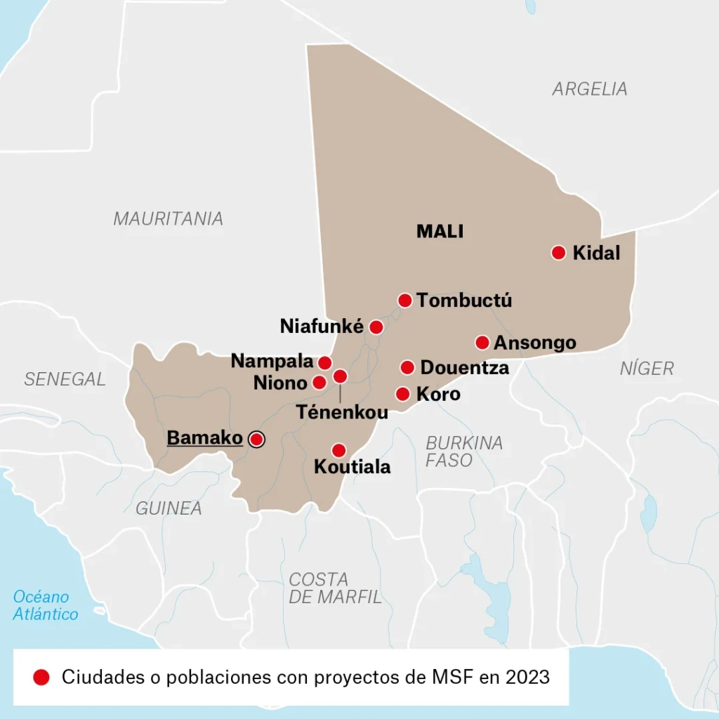 Nº de profesionales * de MSF en 2023: 1,485 | Gastamos 40,2 millones de € | MSF trabajamos por primera vez en Mali en 1992