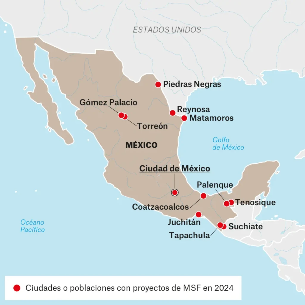 En 2024, México acogió a una cantidad considerable de solicitantes de asilo y personas desplazadas. Médicos Sin Fronteras (MSF) prestamos atención médica y apoyo en salud mental mediante clínicas en todo el país.