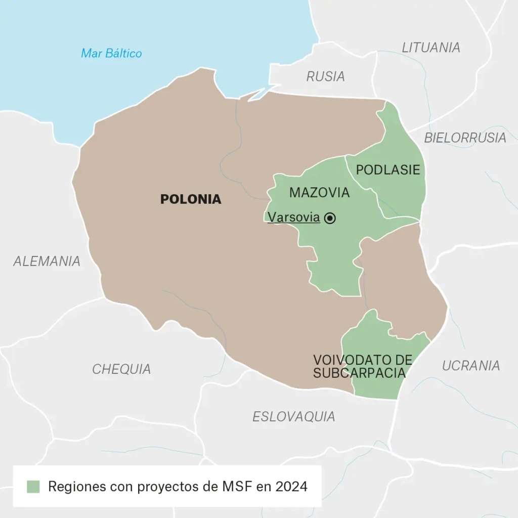 La incidencia política es otro componente importante de nuestro trabajo en Polonia. En 2024, expresamos nuestra preocupación por las nuevas políticas fronterizas que restringirían el acceso al asilo y pedimos tanto al gobierno de Polonia como a las instituciones de la Unión Europea que revocaran inmediatamente estas medidas. MSF seguimos pidiendo que se ponga fin a las expulsiones y que se mejore el trato y la protección de los solicitantes de asilo en Polonia.
