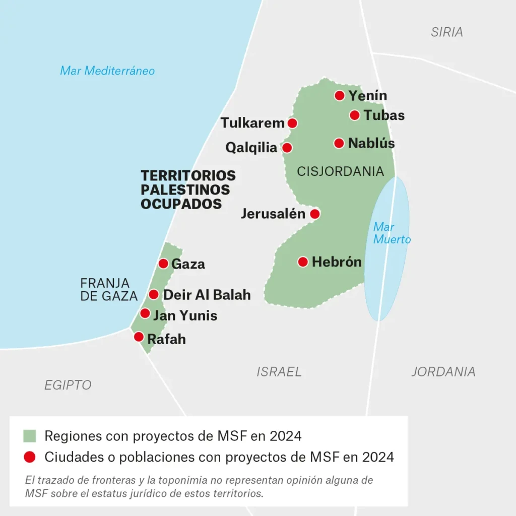 A finales de 2024, las operaciones humanitarias, incluidas las de MSF, seguían enfrentándose a graves restricciones, lo que limitaba nuestra capacidad para atender las inmensas necesidades de las personas que vivían en Gaza y Cisjordania.