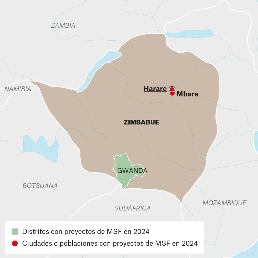 Nº de profesionales * de MSF en 2023: 98 | Gastamos 4,9 millones de € | MSF trabajamos por primera vez en Zimbabue en el 2000